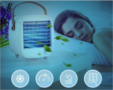 - 【Personal Air Conditioner Fan】This desktop cooling fan is designed for personal use. It adopts the latest evaporative cooling technology, which has low energy consumption and is cooler than traditional fans. It is suitable for personal space cooling and cannot cool the entire room. It is recommended that the use range does not exceed 3-4ft.